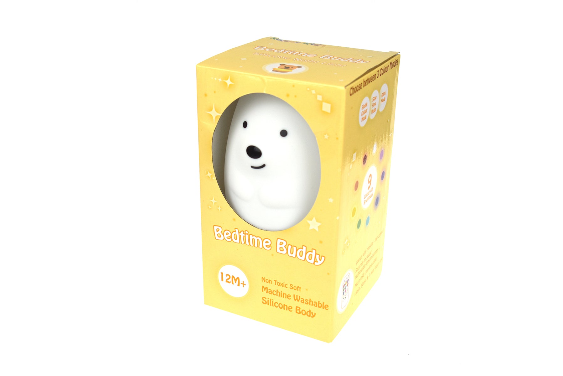 Teddy the Bear Bedtime Buddy Night Lights from Kaper Kidz with soothe any child off to sleep in no time. These night lights are so soft and safe to use, your child can even cuddle up to them if they want to. These high-quality night lights feature a soft silicone body that can be removed from the light component and gently machine washed if needed. The rechargeable 1200mAh battery works for up to 20 hours on one charge and is charged via USB (Cable included) and features a remote control to operate its many functions. The bedtime buddy comes in 3 modes (straight colour, blending through all colours or pulse), 9 light colours, 9 levels of brightness. It also has the added function of a time that can be set to switch off after 15 minutes, 30 minutes or an hour. These high quality night lights are made from non-toxic, gentle machine washable silicone, ABS material that is safe for babies and toddlers. It is also free of BPA, Latex, Lead and phthalates. Remote control comes with a 3V Lithium button battery CR2025 and complies with coin battery standard legislation with a secure compartment that children cannot access.
