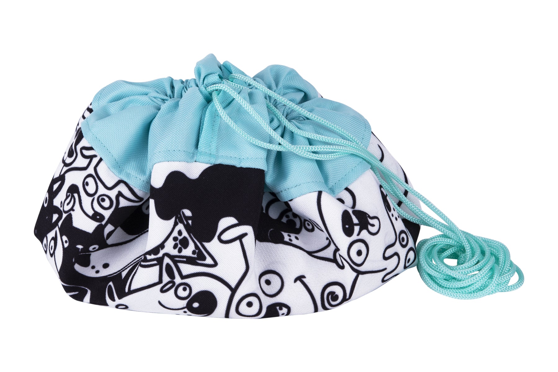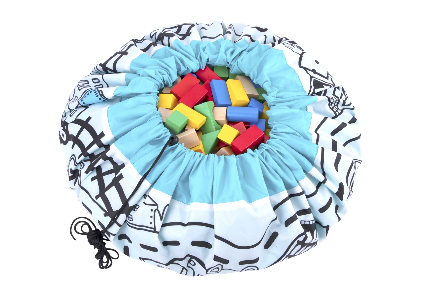 This large playmat measures approx. 90cm in diameter and is perfect for on the go play. Simply fill the mat with your favourite toys and accessories, pull the string chord, and then take your things wherever you want to go.